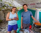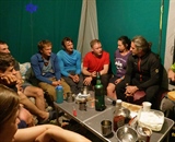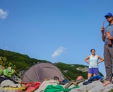 Po dojściu na 1900 m n.p.m. wita nas jaskiniowo rozruszana już ekipa Żylastych Sopociaków. Przyjechali wcześniej by rozłożyć bazę i już zdążyli podziałać w okolicznych jaskiniach. Wspominają coś o Ciepłej, strasznych zaciskach w B37, czy studzience do sprawdzenia w Ciekawej...