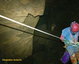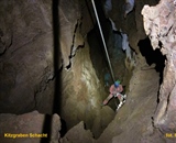 Kiedy wreszcie poczułem, że dam radę, to zgłosiłem kierownikowi, że mogę iść na biwak. I tak, 18 sierpnia wchodzę z Karolem i Hawranem do Kitzgraben na dwie szychty. Na pierwszą idziemy od razu, z marszu, po zjedzeniu lekkiego obiadu na biwaku. Miejsca do sprawdzenia nie są daleko, bo idziemy tylko do Sali z Blokami (patrz poprzednia relacja). Tam wchodzimy w dolne piętro tej sali. Okazuje się ono rozległe i rozczłonkowane. Idąc nim docieramy wstecz za Meander z Mostami, w przeciwną stronę dochodzimy do Kruchej Sali w ciągu głównym, ale najciekawszy, choć mniej obszerny, okazuje się meander sprowadzający jeszcze niżej aż do rozwidlenia. W prawo kończy się przełazem z naciekami (do przekopania), a w lewo wznosi się przez prysznic do dosyć beznadziejnego zawaliska. Tak czy siak okazało się tego sporo – bunkrów nie było, ale i tak było jedwabiście, bo wszystko bez użycia liny. Po takiej szychcie (połączonej z pomiarami) wracamy mocno zmęczeni i śpimy twardo aż do budzika. Jak łatwo się domyślić, nie zrywamy się zbyt gwałtownie, bo suma naszego wieku to ponad 140 lat (sic!). Ale idziemy chętnie, bo naszym celem jest Czarna Rura opadająca z Hyrnego Korytarza. Już kilka zespołów tam zaglądało, ale nikt nie miał na to czasu. Po zjechaniu 40 m pochylni wypadliśmy na rozdrożu. Prawie na wprost, krótki naciekowy korytarz opada kilkumetrową pochylnią wprost do jeziorka lub okresowego syfonu. Jest ładnie, ale nie na tyle, żeby ktoś z nas chciał się w nim zanurzyć. Zgodnie stwierdziliśmy, że jest to idealne zadanie dla Michała Parczewskiego, który lubi takie wyzwania ;-) Następnie sprawdzamy prawą odnogę. Okazuje się ona pięknym meandrem, który konsekwentnie staje się coraz niższy i przez kilka zwężeń sprowadza nas do znajomo wyglądającego przełazu. Okazało się, że to ten sam niedoszły przełaz z naciekami – zamknęliśmy pętlę bez tracenia czasu na kopanie – istny cud, a sukces podwójny. Po zaliczeniu pomiarów, Karol sprawdza jeszcze odnogę w lewo. Po chwili czołgania w rurze zatrzymuje się nad obszerną studnią. Niestety na jej eksplorację już brakło nam czasu. Po takiej szychcie znowu zasypiamy snem sprawiedliwych i następnego dnia wychodzimy na świat.